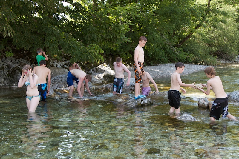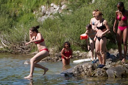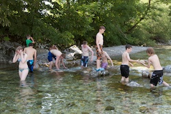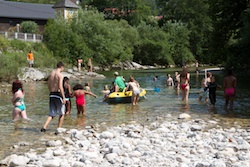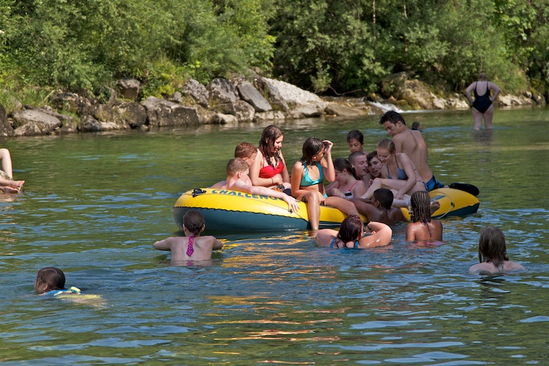 Nach einer kurzen Mittagspause ging es auch schon an die Ybbs. Es wurde geplantscht, geschwommen, nach Steinen getaucht, Schlauchboote wurden gekapert und zurückerobert.
